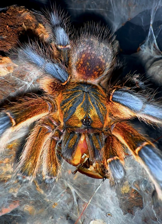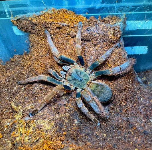 Linothele sericata - Blue and Gold Curtain Web Spider - Female For Sale!