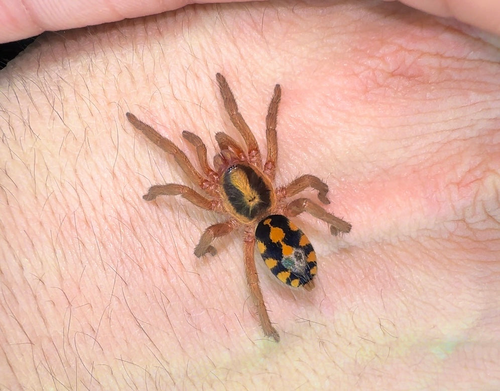The Pumpkin Patch Tarantula… Scientifically known as Hapalopus Formosa (formally known as Pumpkin Patch LRG) is a gorgeous and docile Halloween themed tarantula, infamous for its striking orange and black appearance! Now I’ve been raising up these individuals for well over a year now! Starting out SMALLER then the BALL on a BALLPOINT PEN these baby pumpkin patch’s were eating literal springtails once they first hatched out! Now they are taking down medium to large crickets! They’re currently 2.75 - 3+ inches in legspan and are well past the vulnerable stage for this species! Technically there already sexually Mature but they are no where near full grown! You can expect your Sub Adult Female to reach a maximum leg-span of 4.5 inches! I also have 1.5 - 2 inch males for sale so feel free to ask for a male if you’re interested in breeding this amazing species in the future!